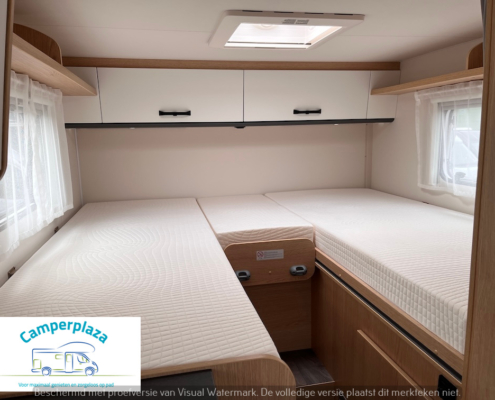 De Sunlight V66 onderscheidt zich door de iets smallere breedte van de camper. Achter in de camper zijn 2 vaste slaapplekken, twee eenpersoonsbedden die om te bouwen zijn tot een tweepersoonsbed. Deze camper is geschikt voor 1 - 3 personen.