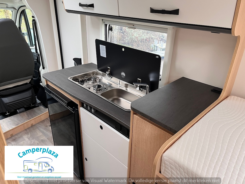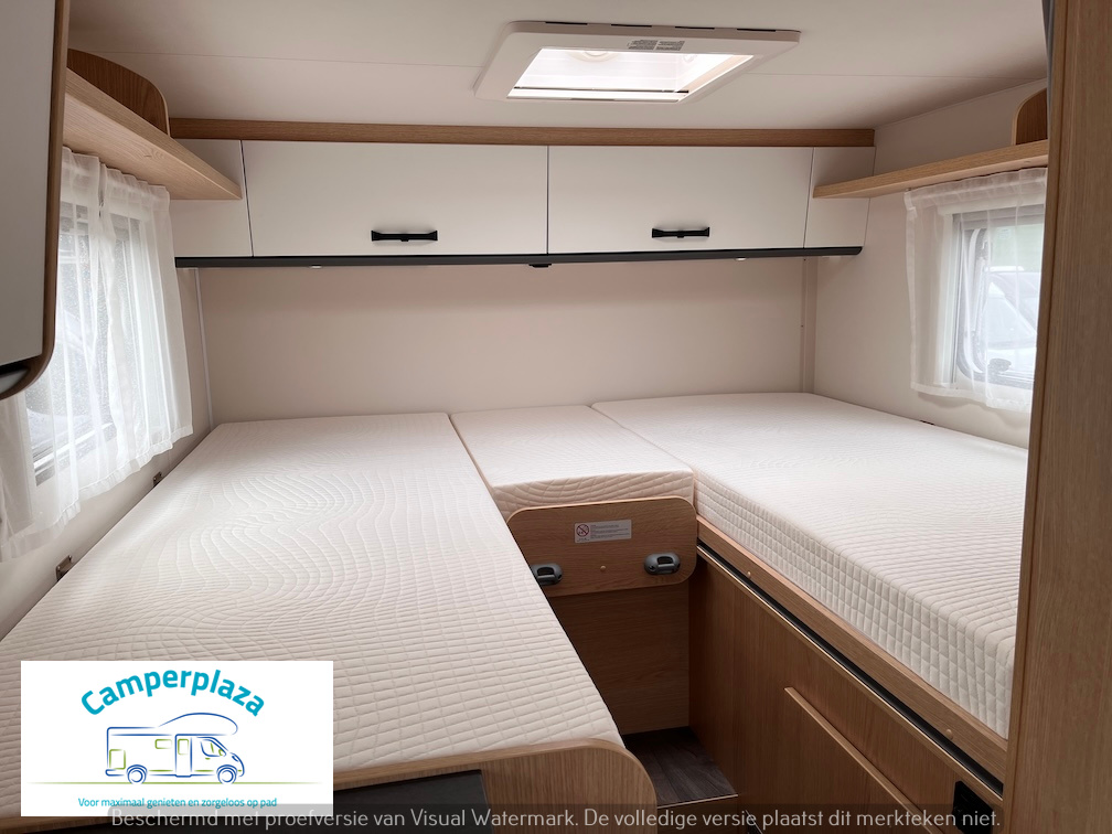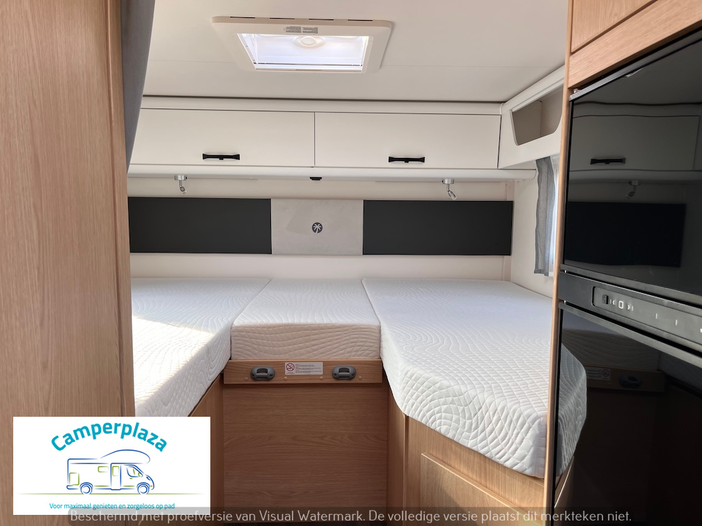 De Sunlight T66 is een luxe en ruime half-integraal camper van bijna 7 meter. Achter in de camper zijn 2 vaste slaapplekken, twee eenpersoonsbedden die om te bouwen zijn tot een tweepersoonsbed. Deze camper is geschikt voor 1 - 3 personen.